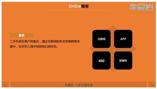 蔡旭认为,拒绝繁琐、提倡极致的互联网思维是作为电商企业的第一要务。在茫茫人海中,online集客是能够建立精准需求的最佳沟通方式,车易拍需要通过互联网平台告诉其上端消费者,全国6000车商都在车易拍的平台上等着买车,只有让消费者直观认知卖车如此简单,才会将消费者从线上引导至线下。